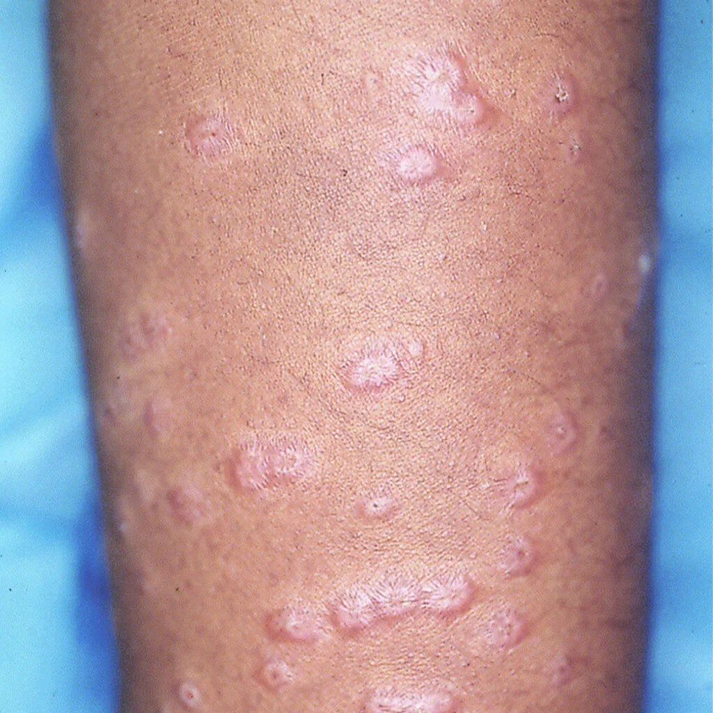• Lofgren’s syndrome: a specific form with fever, swollen lymph nodes, painful red patches on shins, and arthritis